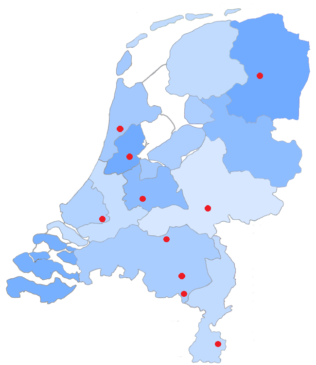 De klassikale lessen vinden plaats op goed bereikbare locaties. Bij voldoende inschrijvingen vindt de cursus van plaats in: